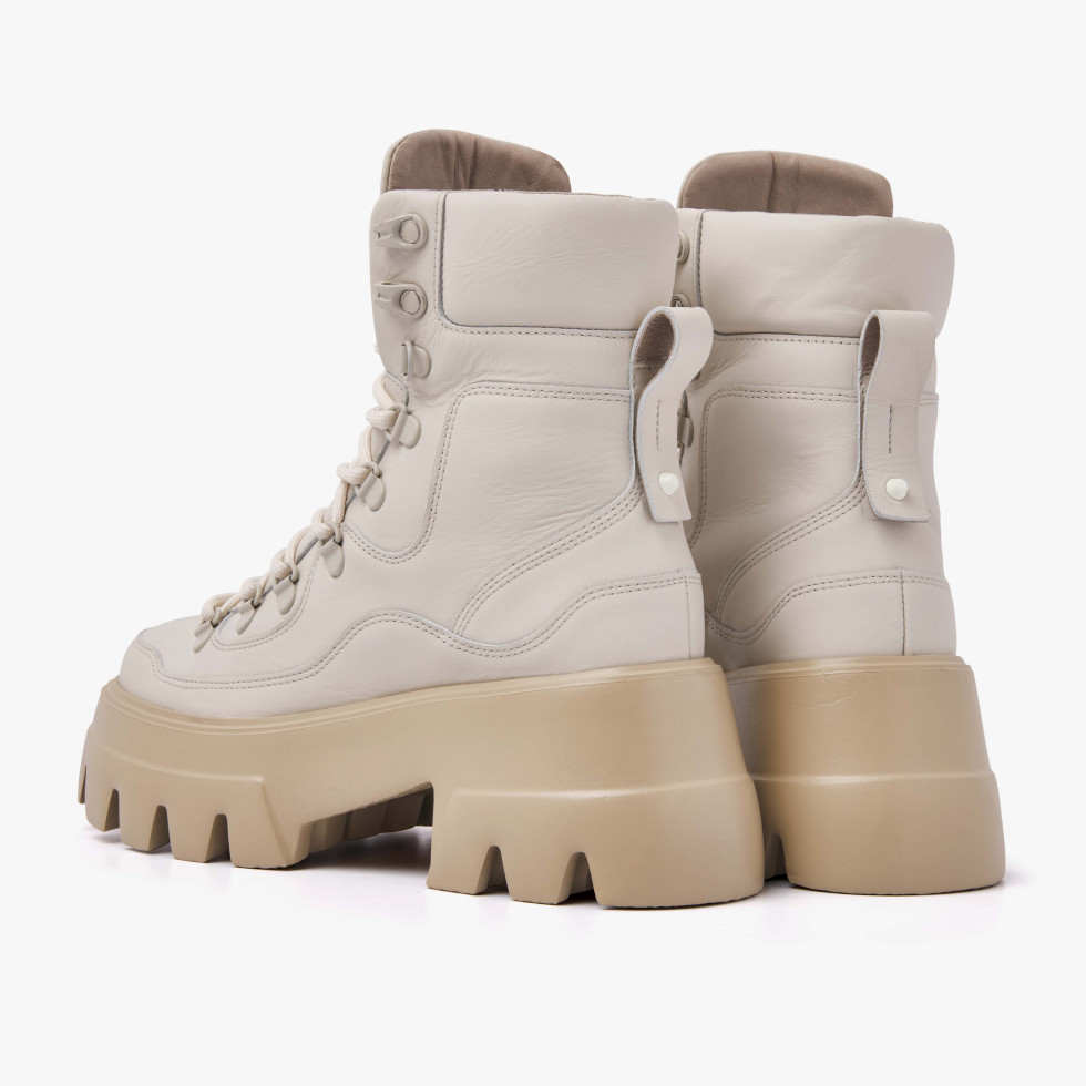 Nubikk's Flore Montagne beige Stiefel für Damen ist eine modische Übersetzung eines klassischen Wanderschuhs. Dieser Artikel ist aus hochwertigem Leder gefertigt und mit einem weichen, elastischen Mesh gefüttert. Darüber hinaus ist der Stiefel mit einer bequemen, leichten Sohle mit grobem Profil für zusätzlichen Halt ausgestattet.