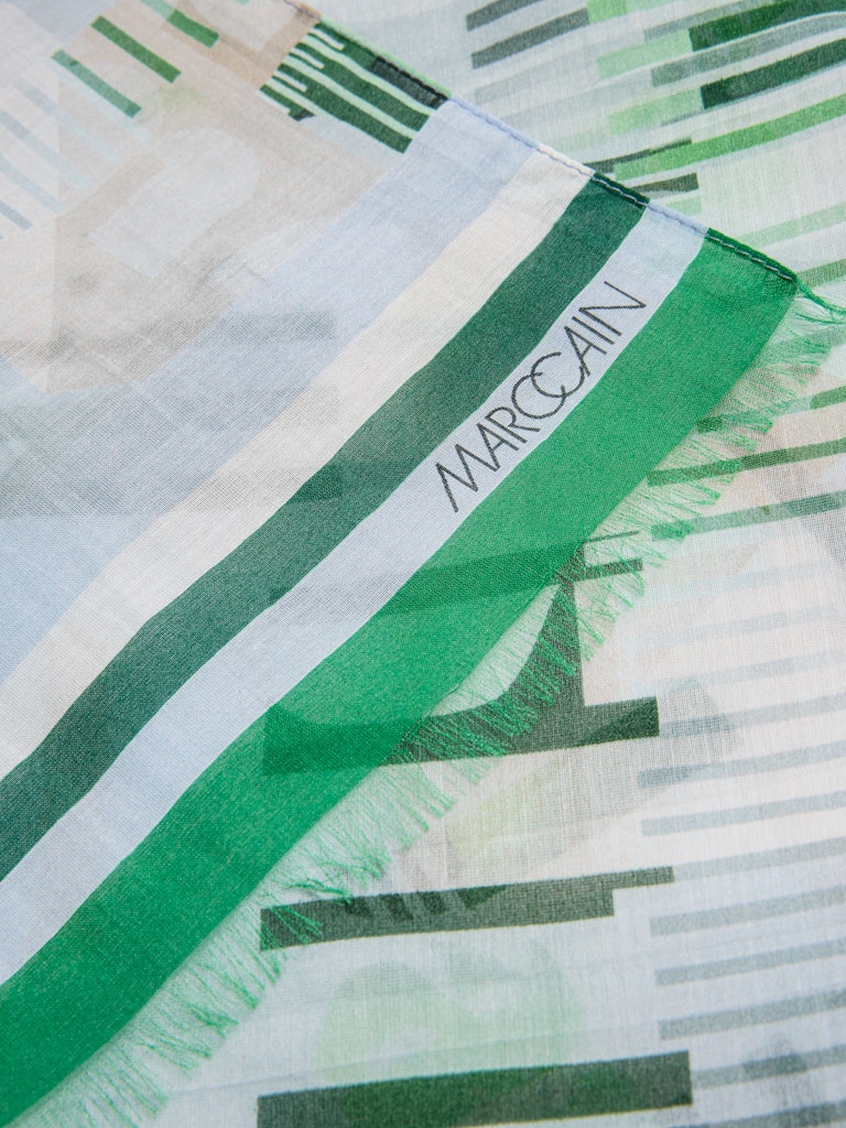 Der länglich geschnittene Schal aus zarter Baumwoll-Seide begeistert mit stilisiertem, mehrfarbigem Print und feinen Fransen an den kurzen Seiten. Das leichte, angenehm weiche Material macht ihn zum perfekten Accessoire für jede Saison.