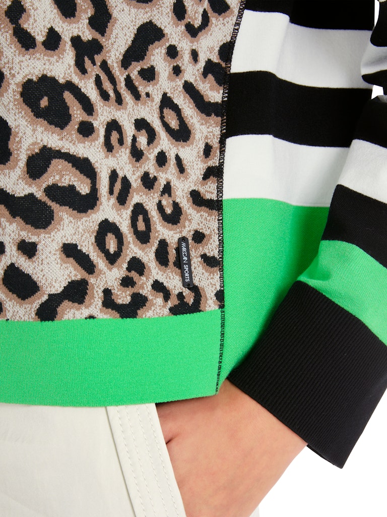 Sweater in Mustermix Knitted in Germany|Strickpullover in Mustermix. Das Modell ist im Rücken gestreift und trägt in der Front ein Leofell-Muster. Die Form ist oversized und das Material weichfließend. Der Pulli wird mit modernsten Technologien in Deutschland gestrickt und veredelt. Die einzelnen Teile - wie Rücken- und Vorderteil etc. - werden in europäischen Partnerbetrieben zusammengenäht.|Oversized|Knitted in Germany